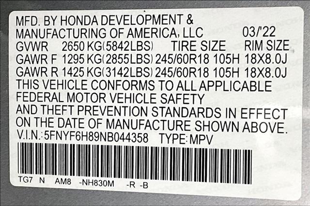 CARFAX One-Owner. Clean CARFAX. Lunar Silver Metallic 2022 Honda Pilot TrailSport AWD 9-Speed Automatic 3.5L V6 24V SOHC i-VTEC **CLEAN VEHICLE HISTORY REPORT** **ONE OWNER** Pilot TrailSport 3.5L V6 24V SOHC i-VTEC AWD 7 Speakers Air Conditioning Auto High-beam Headlights Blind Spot Information (BSI) System warning Brake assist Emergency communication system: HondaLink Assist Forward collision: Collision Mitigation Braking System (CMBS) + FCW mitigation Front fog lights Fully...